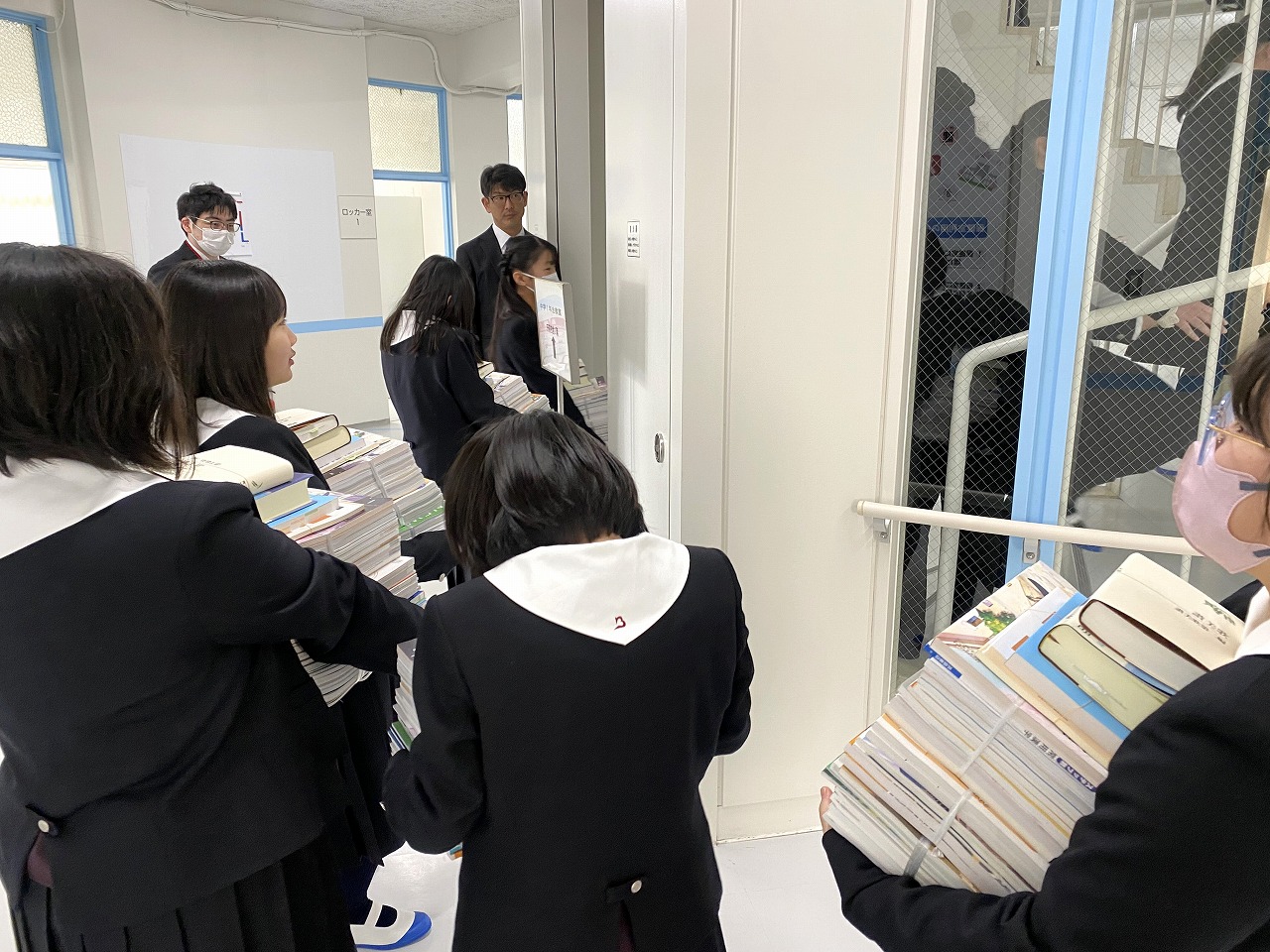 新入生は教室に戻り、これから授業で使用する教科書などを受け取りました。