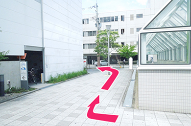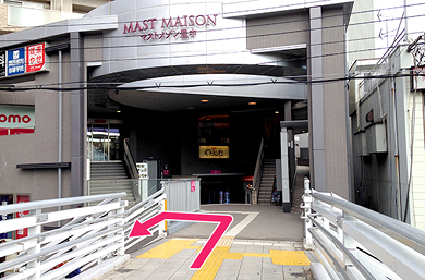 エスカレーター降り口を右に曲がります。