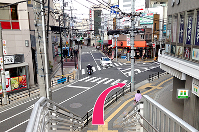 階段を降りたら、そのまま道なりに商店街を進みます。
