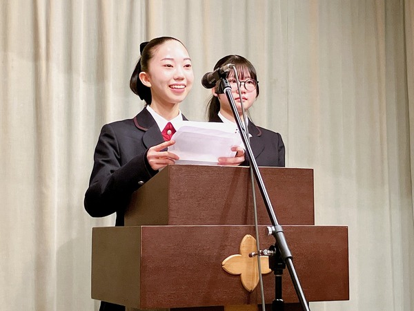 今朝の全校礼拝では、交流会に参加した2名の生徒が奨励を行い、交流会で見たこと・感じたことをお話ししてくれました。