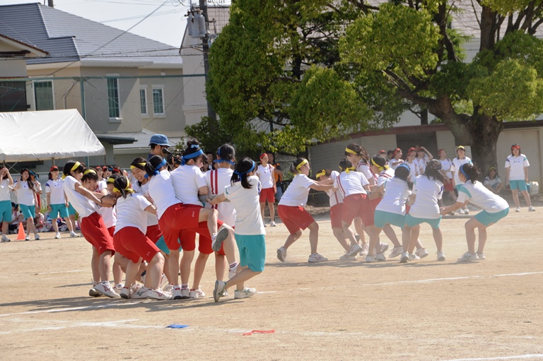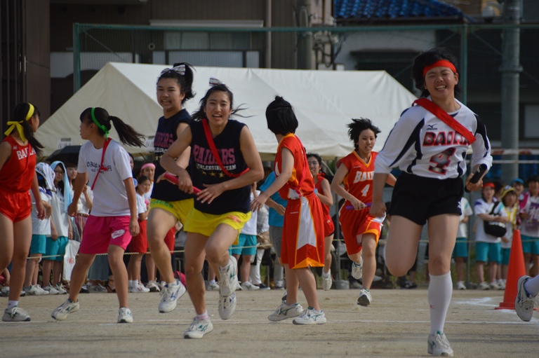 午後には他にも玉入れや大縄跳び、ムカデ競争、棒引き、騎馬戦といった競技が行われ、午前中に実施されたリレーの決勝も行われました。