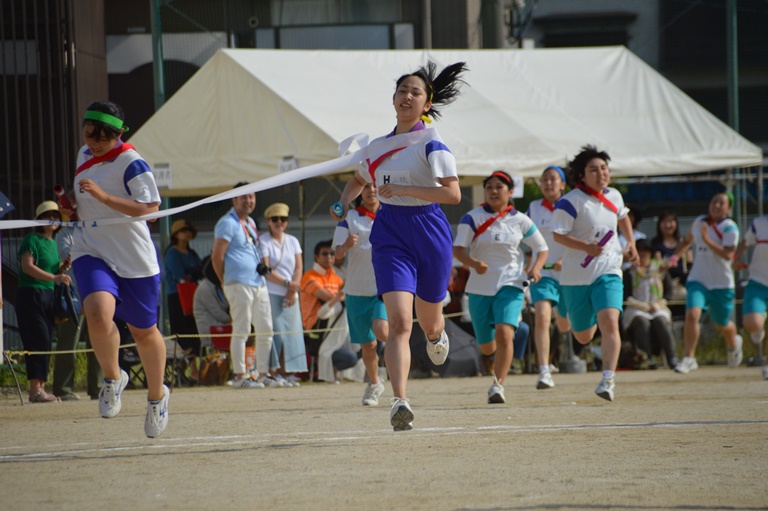 最後の「クラブ対抗リレー」では、クラブ部員に混じって教員チームも参加、会場は大いに盛り上がりました。