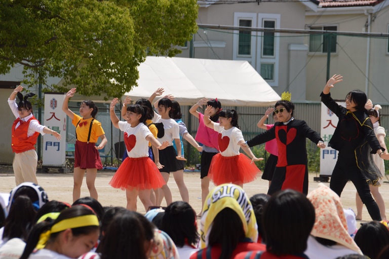 昼休憩をはさみ、午後の部のはじまりは、生徒みんなが楽しみにしている高校3年生の「仮装行列」。